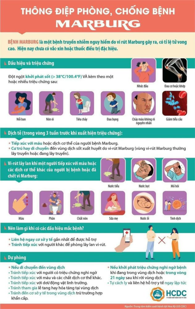 - Truy vết kịp thời những người có tiếp xúc với người nhiễm Marburg và giám sát chặt chẽ những người có nguy cơ cao nhiễm bệnh.